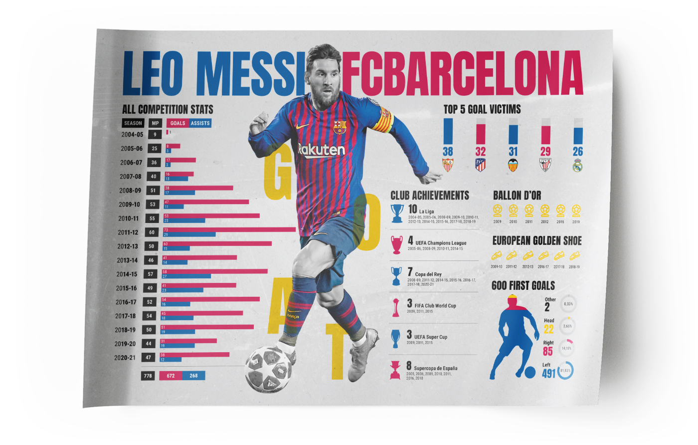 Propuesta infográfica de Leo Messi con el FC Barcelona para un periódico local.