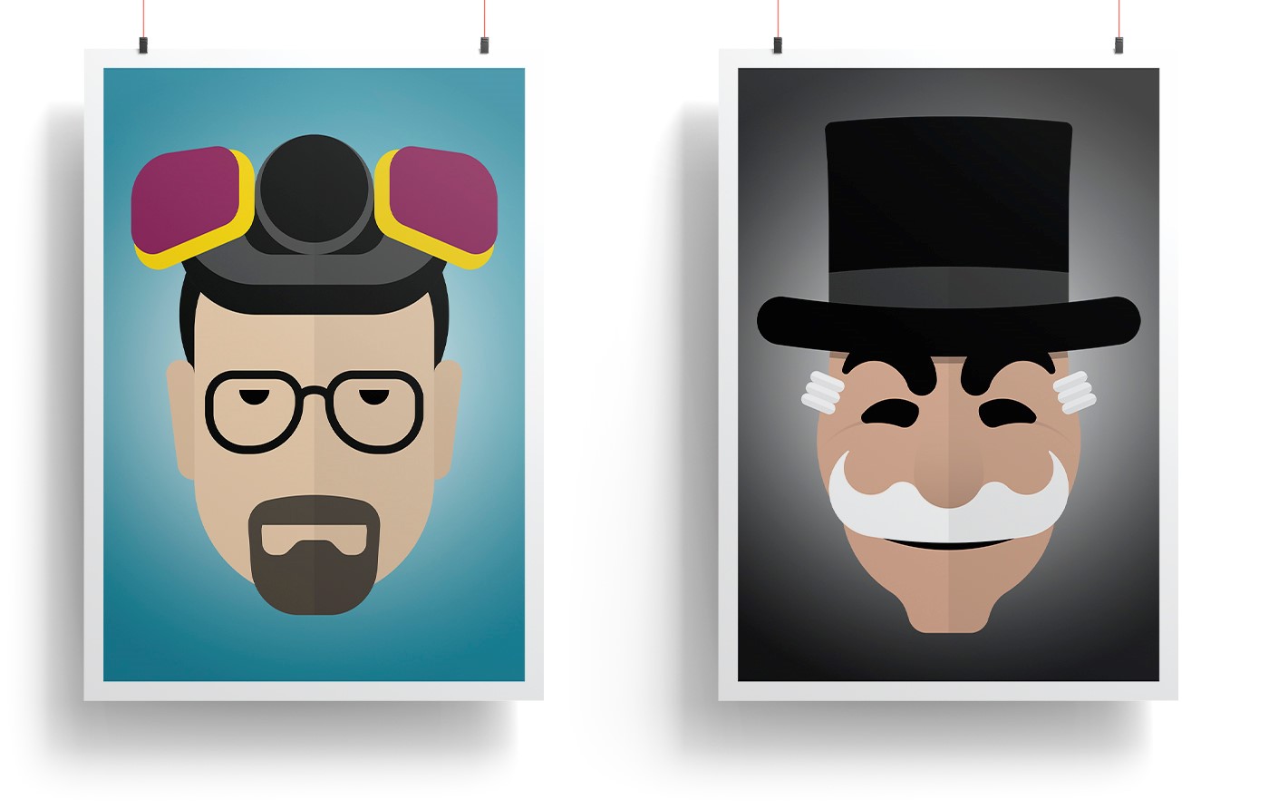 Trabajo de ilustración vectorial minimalista basado en distintos personajes.